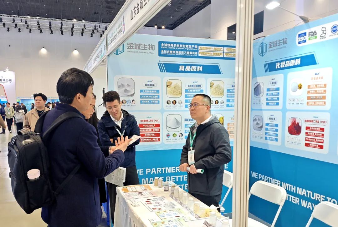 ? ? ? 在博覽會(huì)展示區(qū),金城生物全方位展示了公司核心產(chǎn)品與前沿合成生物學(xué)技術(shù)。公司以谷胱甘肽為核心,開(kāi)發(fā)了多領(lǐng)域應(yīng)用解決方案,展示了企業(yè)做“全球谷胱甘肽應(yīng)用方案解決者”的系統(tǒng)科研與技術(shù)優(yōu)勢(shì),同時(shí)基于“合成生物學(xué)+化學(xué)合成”雙合成研發(fā)平臺(tái)優(yōu)勢(shì),已形成腺苷蛋氨酸、PQQ、蝦青素等系列生物與大健康產(chǎn)品矩陣,展現(xiàn)了公司在合成生物學(xué)領(lǐng)域的最新發(fā)展成果和“用合成生物學(xué)締造綠色可持續(xù)發(fā)展未來(lái)”的探索實(shí)踐,吸引了眾多參會(huì)者駐足交流洽談。